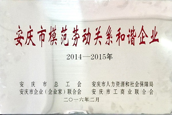 安慶市模范勞動關(guān)系和諧企業(yè)